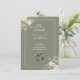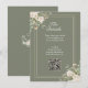 Offrez à vos invités tout ce dont ils ont besoin en utilisant cette carte de détails de mariage magnifiquement conçue. Avec des florales neutres douces, un fond vert sauge romantique et une double bordure dorée, cette carte comprend un espace pour votre site web de mariage et un code QR scannable pour un accès rapide aux directions de conduite, informations de réception, hébergements, et plus encore. Un parfait accord avec les thèmes de mariage classiques ou de jardin.