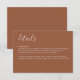 Cette carte de détails de mariage en terracotta moderne présente un design minimaliste avec une couleur terracotta terreuse et bohème et une typographie moderne et épurée. Une suite de mariage coordonnée est disponible.