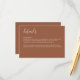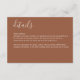 Cette carte de détails de mariage en terre cuite moderne présente un design minimaliste avec une couleur terre cuite boho et une typographie moderne et épurée. Une suite de mariage coordonnée est disponible.