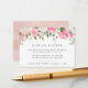 Faites glisser ces petites cartes dans votre baby shower ou vos invitations à la douche nuptiale lorsque vous demandez que les invités apportent leurs cadeaux non emballés. Le design floral pastel à l'aquarelle rose pâle et vert eucalyptus s'accorde avec notre collection d'invitation florale du milieu de l'été. Un poème sucré explique le concept et la demande de "douche d'affichage", et peut être modifié pour répondre à vos besoins. Personnalisez avec le nom de l'invité d'honneur et la date de la douche en bas.