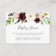 Faites glisser ces petites cartes dans votre baby shower ou vos invitations à la douche nuptiale lorsque vous demandez que les invités apportent leurs cadeaux non emballés. Le design floral chic est composé d'un ensemble de fleurs d'aquarelle rose, d'ivoire et de bordeaux et de feuillage vert qui correspondent à notre collection d'invitations Blush Romance. Un poème sucré explique le concept et la demande de "douche d'affichage", et peut être modifié si désiré.