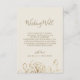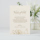 Ce mariage à la crème fleurie dorée, qui souhaite bonne carte, est parfait pour un mariage élégant. Le design boho moderne présente un arrangement fantaisiste de faux feuilles d'or dessiné à la main, de feuilles et de botaniques sur un arrière - plan crème. Personnalisez cette carte d'invitation avec vos noms, et un court poème de bienvenue. Remarque : Ce design ne comporte pas de véritable feuille d'or. C'est un graphisme de haute qualité fait pour ressembler à du papier doré.