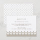Conçue pour coordonner avec nos invitations de mariage et d'événement Arabesque, cette carte de réception élégante et luxueuse dans des tons champagne et beige présente une bordure géométrique inspirée du Maroc en bas. Ajoutez vos informations de réception de mariage comme l'heure, le lieu, l'adresse et les détails de stationnement ou de transport en beige-gris. Nous recommandons d'imprimer ce style sur le papier Champagne Shimmer pour une finition lumineuse.