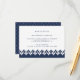 Conçue pour coordonner avec nos invitations de mariage et d'événement Arabesque, cette élégante carte de réception dans un bleu nuit et blanc intemporel présente une bordure inférieure géométrique inspirée du Maroc. Ajoutez vos informations de réception de mariage comme l'heure, le lieu, l'adresse et les détails de stationnement ou de transport dans un bleu nuit assorti.