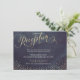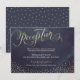 Conception de calligraphie à main levée or glamour et confettis de points or sur fond aquarelle sombre de nuit ciel marine, effet pailleté métallisé or brillant, moderne, chic, propre et élégant, parfait pour un mariage vintage ou un mariage d'hiver en soirée. Personnalisez votre propre carte de réception pour votre invitation de mariage.