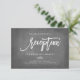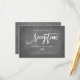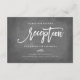 Cette carte de réception élégante présente des polices élégantes et un fond de tableau noir.