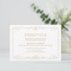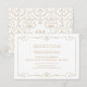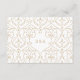 Élégance vintage, cadre orné de motifs en spirale de couleur or sur fond blanc modifiable. Motif damassé avec monogramme au dos, moderne, élégant et chic, parfait pour un mariage vintage, un mariage Art déco toute l'année. Couleur de fond modifiable pour correspondre aux couleurs de votre thème de mariage. Personnalisez votre propre carte de réception pour votre faire-part de mariage.