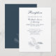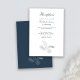L'élégante carte de réception Mariage présente un design typographique élégant avec une illustration minimaliste vintage en feuille de palme tropicale de couleur bleu marine. Le thème des couleurs se retrouve sur le dos de la carte avec l'image de la feuille tropicale en blanc. Ce papier à lettres mariage est prêt pour vous à customiser avec les détails de votre journée spéciale. Fait partie d'une collection qui ne cesse de croître.