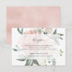 Conçue pour aller avec notre collection de mariage florale aquarelle de la mi-été, cette carte de réception botanique élégante présente une gerbe de pivoines et de roses peintes à l'aquarelle en rose saumon, pêche et crème, avec les détails de votre réception de mariage superposés sur un rectangle transparent. Une carte d'insertion élégante et chic pour les mariages de printemps ou d'été.
