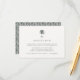L'élégante carte d'enceinte de réception de mariage de l'île présente d'élégantes lettres gris charbon de bois avec une illustration de palmier de style gravé vintage. Customisez avec le moment de la réception de votre mariage, l'emplacement et toute information supplémentaire en utilisant les champs fournis. Les cartes retournent à un motif tressé en chaume en vert chasseur noirci. Conçu pour coordonner avec notre collection de faire-part de mariage Havana Palm pour l'été, la plage, les îles tropicales et les affaires de destination.