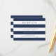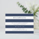 Les cartes élégantes et simples du boîtier de la réception sont ornées de lettres modernes sur un arrière - plan rayé bleu marine et blanc.