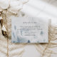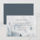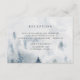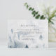 Conçue pour aller de pair avec notre collection de mariage Rêverie d'hiver, cette élégante carte d'invitation de réception hivernale présente une scène de forêt enneigée avec des pins aquarellés en bleu et gris. Personnalisez avec les détails de votre réception de mariage, y compris l'heure, le lieu et l'adresse, en lettrage classique noir délavé.