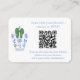 Cette carte d'insertion de code QR simple et élégante (pour le registre ou la réponse ou toute autre chose liée à l'événement) présente mon illustration originale de pot de gingembre bleu et blanc avec un nœud vert. Au verso se trouve un tartan bleu et vert festif.