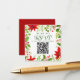 Cette carte de réponse classique de mariage de Noël rouge présente des fleurs de poinsettia lumineuses avec des baies de houx et de la verdure entourant un code QR de site web pour que les invités scannent et répondent. Une carte d'insertion petite réponse botanique festive et lumineuse pour un mariage de fêtes avec un script vert.