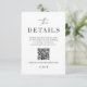 Utilisez nos cartes de détails modernes pour permettre à vos invités de scanner le code QR pour voir les détails de votre mariage et l'adresse de votre site web. Cet article fait partie de notre suite d'invitations de mariage Colette C300, veuillez visiter notre magasin pour voir la collection d'articles coordonnés.