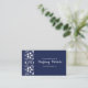 Fournir une carte de site Web est un moyen peu coûteux, fonctionnel et respectueux de l'environnement de communiquer votre site Web mariage à votre invité et de partager des mises à jour en ligne, des informations importantes telles que les directions ou même RSVP. Cette carte élégante du site de mariage est de mon Lace Love | Rustic Monogram Mariage Suite, dispose d'un simple arrière - plan bleu marine avec une dentelle vintage blanche, personnalisée avec votre propre monogramme. Parfait pour de nombreux styles de mariage, y compris un mariage rustique, vintage, mariage nautique ou mariage d'hiver. En cliquant sur le bouton "Customiser" vous pouvez aller à l'outil de conception, où vous pouvez changer la police, les couleurs, la position du texte et bien plus encore. Si vous avez des questions ou des demandes spéciales, n'hésitez pas à me contacter à l'adresse margherita@bluebirdinvites.com.