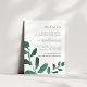 Conçue pour coordonner avec notre collection de mariages botaniques en Emerald, cette carte d'information élégante verte et blanche de la forêt présente des ressorts de vert éclatant aquarelle, encadrant vos principaux détails mariages, tels que les chambres d'hôtel, les informations de bienvenue à la réception, le site Web et plus encore. Ajoutez votre texte personnalisé à l'aide des champs fournis et utilisez la fonction Personnaliser pour ajuster les polices, les tailles et l'espacement.