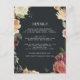 Conçue pour coordonner avec notre collection de mariage Moonlight Garden, cette élégante carte d'informations florales d'automne comporte une bordure de fleurs d'aquarelle rousse et bordeaux et de verdure encerclant vos principaux détails mariages, comme les chambres d'hôtel, les informations de bienvenue de la réception, le site Web et plus encore. Ajoutez votre texte personnalisé à l'aide des champs fournis et utilisez la fonction Personnaliser pour ajuster les polices, les tailles et l'espacement.