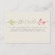 Cette carte de détails fleur sauvage de ressort mariage est un encart plein de charme, parfait pour partager des informations supplémentaires avec vos invités. Doté de fleurs d'aquarelle dans des tons pastel doux et d'un élégant script de calligraphie, il se coordonne parfaitement avec la suite fleur sauvage complète. Customisez avec votre site Web mariage, le site RSVP, les hébergements, les informations de réception ou les directions. Une manière délicate et pratique de tenir vos invités informés tout en maintenant votre esthétique boho.