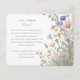 Cette élégante carte d'information de mariage présente un design fleur sauvage époustouflant, idéal pour une mariage romantique, un jardin ou un thème rustique. L'avant de la carte présente un éventail de fleurs sauvages délicats dans des tons pastel doux, dont des tons lavande, pêche, jaune et bleu, le tout magnifiquement illustré dans un style aquarelle peint à la main. Le dos de la carte continue le thème floral, offrant un espace suffisant pour des détails supplémentaires tels que les directions, les détails de la cérémonie ou les préférences de cadeau. Les éléments botaniques sereins et la typographie classique créent un design harmonieux et intemporel qui complète n'importe quelle suite de faire-part de mariage. Cette carte d'information est une belle façon de partager des détails importants avec vos invités tout en ajoutant une touche de beauté naturelle à votre papeterie mariage.