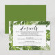 Elégante calligraphie Carte d'information avec cadre feuille tropical branché. Utilisez-le pour les détails et la direction, l'hébergement ou plus. Il fait partie de la collection tropicale de mariage élégant!