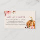 Carte de demande de baby shower pour les cadeaux non emballés pour une douche d'affichage. Avec des illustrations citrouilles et florales avec poème sur demande "Votre beau cadeau sera mis en exposition afin qu'aucun besoin d'envelopper. un cadeau non emballé est tout aussi sucré, et économisera plus de temps pour se mélanger et manger."