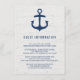Un ancre bleu marine sur un bois comme un arrière - plan blanc cassé. Idéal pour un mariage à thème nautique, surtout si vous voyagez dans un style rustique ou vintage. Ces cartes peuvent être customisées avec n'importe quel texte - utile pour les directions, l'information sur l'hébergement, les menus, les programmes ou les invitations à la fête.