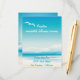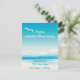 Océan bleu turquoise et ciel bleu clair. Ondes océaniques s'écrasant sur le rivage, mouettes flottant dans le ciel et une silhouette de palmiers - invitations de mariage entièrement personnalisables et extras assortis.