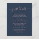 Offrez à vos invités les détails importants avec cette carte d'invitation de mariage élégante bleu marine et rose, avec une police de caractères moderne. Articles assortis disponibles. Demandes personnalisées les bienvenues.