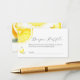 Une charmante carte en tombola de couche conçue avec des oeuvres d'art citron aquarelle de Victoria Grigaliunas. Pour voir l'ensemble du thème du baby shower, des jeux et d'autres idées de baby shower visitez www.zazzle.com/dotellabelle