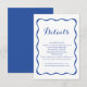 La carte Mariage Blue Frame est un charmant mélange de fantaisie vintage et d'élégance moderne, parfait pour les couples à la recherche d'un ajout unique et mémorable à leur papeterie mariage. Cette carte de boîtier présente une palette de couleurs bleu roi époustouflante, évoquant un sentiment de sophistication royale qui complète toute célébration mariage. Au coeur de la carte d'enceinte se trouve un cadre à ruban dessiné à la main, qui sert de point central de la conception. Ce détail fantaisiste mais élégant ajoute une touche de romantisme et d'amusement à la carte, capturant la joie et l'excitation de l'occasion. Le cadre de ruban enferme les détails mariages, attirant l'attention sur les informations essentielles avec un style de coquette décontracté. La typographie utilisée dans la carte de boîtier est soigneusement sélectionnée pour compléter l'esthétique globale. Une élégante typographie moderne est associée à un script tendance, créant un équilibre harmonieux entre les styles classique et contemporain. Cette combinaison de polices ajoute un intérêt visuel et une profondeur à la conception, tout en assurant que les détails mariages sont transmis clairement et magnifiquement. Des éléments subtils vintages et rétro sont intégrés au design, ajoutant un sentiment de nostalgie et de charme. Du ruban dessiné à la main au script fantaisiste, chaque détail de la carte de boîtier dégage un charme intemporel à la fois élégant et unique. L'utilisation du bleu royal comme couleur primaire renforce le sens de l'élégance royale de la carte d'enceinte, tout en ajoutant une touche moderne à l'esthétique globale. La teinte riche dégage un sentiment de luxe et de sophistication, ce qui en fait un choix idéal pour les couples qui veulent faire une déclaration avec leur papeterie mariage. Cette carte Mariage à cadre bleu conviendra parfaitement aux couples qui recherchent un mélange de charme vintage et de sophistication moderne. Son design unique, ses détails fantaisistes et sa typographie élégante en font un choix exceptionnel pour un mariage qui valorise la créativité, le style et le romantisme.