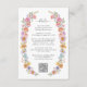 Carte Mariage colorée. Gardez vos invités informés avec une carte de détails magnifiquement conçue qui est aussi étonnante que le reste de votre suite. Idéale pour un événement de printemps, d'été ou d'automne capricieux, cette carte est dotée d'une élégante couronne d'aquarelle remplie de pivoines colorées en rose vif, fuchsia, orange et jaune doré, ainsi que de roses lavande violet, de delphinium bleu, de marguerites, de fleurs sauvages et d'un papillon doux pour un charme supplémentaire. Un code QR à l'avant permet un accès rapide aux informations sur les mariages, tandis que l'arrière montre un motif de coordination pour une finition cohésive. Créez une pièce élégante et utile qui cravate l'ensemble de votre vision mariage - commencez à personnaliser dès aujourd'hui.