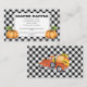 "BaByQ" occasion "tombola de couche" design avec des petits buffles en diagonale noir et blanc avec un rectangle blanc encadré noir orné de citrouilles pour vos noms et votre date. Le design du dos est doté d'un camion vintage d'aquarelle orange chargé de citrouilles et de tournesols. Conception composite par Holiday Hearts Designs (droits réservés).