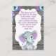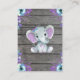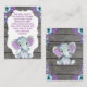 Bibliothèque pour Bébé, Réservez la carte de demande pour une douche Fille avec éléphant aquarelle et fleurs violettes et turquoises/turquoise.