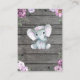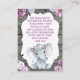 Bibliothèque pour Bébé, Réservez la carte de demande pour une douche Fille avec l'éléphant aquarelle et les fleurs violettes et violettes/lilas.