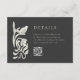 Cette élégante carte de Mariage en noir et blanc Détails (Hébergements) avec code QR de la Collection Adaline présente toutes les fleurs de style art déco dessinées à la main. Une première impression étonnante pour vos clients mariages !