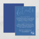 Cette carte d'information bleue mariage est simple mais élégante. Customisez facilement pour votre événement. De belles positions calligraphiques peuvent être changées pour suite une variété de mariage stationnaire. Cette carte de boîtier est polyvalente pour les couleurs bleu roi ou bleu marine mariage.