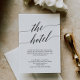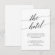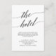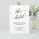 Cette élégante carte d'enceinte d'hôtel en calligraphie noire est parfaite pour un mariage simple. Le design neutre présente une carte minimaliste décorée de typographie romantique et fantaisiste.