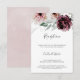 Cette carte d'encarts de réception de mariage romantique à fleurs est parfaite pour un mariage élégant. Le design boho rustique moderne présente des fleurs d'aquarelle romantiques dans des tons doux de bordeaux, mauve, rose rousse et blanc crème avec des feuilles verts. Personnalisez cette carte détaillée de boîtier avec vos informations de réception et incluez également votre adresse de site mariage !
