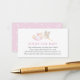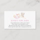 Une carte d'insertion de demande de livre pour le baby shower. Doté d'une cigogne d'aquarelle portant un bébé enveloppé dans une couverture rose avec poème : "UNE PETITE DEMANDE, NOUS ESPÉRONS NE PAS TROP DUR S'IL VOUS PLAÎT APPORTER UN LIVRE PLUTÔT QU'UNE CARTE, ILS CHERCHERCHERONT LE LIVRE, BIEN AIMÉ OU NOUVEAU S S PLAISIR SIGNER UN MESSAGE À L'INTÉE !"