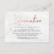 Cartes d'information mariage élégantes et modernes avec police de script en or faux rose, arrière - plan en marbre blanc et des espaces réservés pour vos détails de mariage personnalisés. L'arrière des cartes d'information du mariage d'or rose peut être changé en une couleur de votre choix grâce à l'outil de Personnaliser.