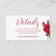 Détails du mariage / site web boîtier petites cartes pour diriger les invités vers un site mariage pour plus d'informations. Style de police imprimé fin en rouge sur blanc. L'inverse est de rouge solide. La modification de la taille de cette carte peut déplacer le libellé de façon à s'assurer qu'elle s'adapte correctement.