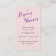 Cette petite carte est parfaite pour ajouter une demande spéciale pour une invitation baby shower. L'arrière - plan est rose clair avec calligraphie violette qui dit : Display Shower.