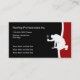 Moderne einfache Dach-Baugewerbekartenschablone entwarf mit einem Arbeiter mit einem Hammer in seiner Hand und in roten, schwarzen und weißen Farbkombination, die sich gut für einen Dachservice darstellt und Firma oder unabhängigen Auftragnehmer umgestaltet.