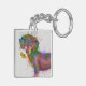 Cette impression d'aquarelle présente un portrait coloré d'un dachsund dans des lunettes turquoises ornées de fleurs | Par Fab Funky