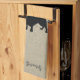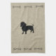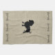 Belle serviette de cuisine décorative avec silhouette noire et bordure de défilement, parfait pour les amateurs de dachshund!