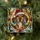 A Christmas ornament with a stained glass Dachshund wearing a Santa hat.