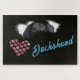 Das Rätsel für diejenigen, die eine echte Herausforderung Liebe. Das ist ein fast solides schwarzes Puzzle mit einem Teil des Gesichts einer Dackel mit weißem Hintergrund - alles umgeben von Dunkelheit. Ideal für Hundefreunde und Rätsel-Liebhaber.
