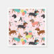 Niedliche Geburtstag Party Dackel Hunde mit Schwarz, Bräune und Apfelmäntel gekleidet in niedliche Geburtstag Outfits mit Ballons, Kuchen und Konfetti Muster.
