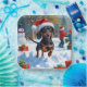 Eine spielerische Dackel läuft durch die schneebedeckte Winterlandschaft und trägt einen festlichen Weihnachtshut. Dieses charmante Design hebt den langen Körper der Rasse, die kurzen Beine und die gefühlvolle Persönlichkeit hervor und erweckt gleichzeitig die Wärme und Freude der Ferienzeit. Ein schöner Wintermoment voller festlichen Beifall.